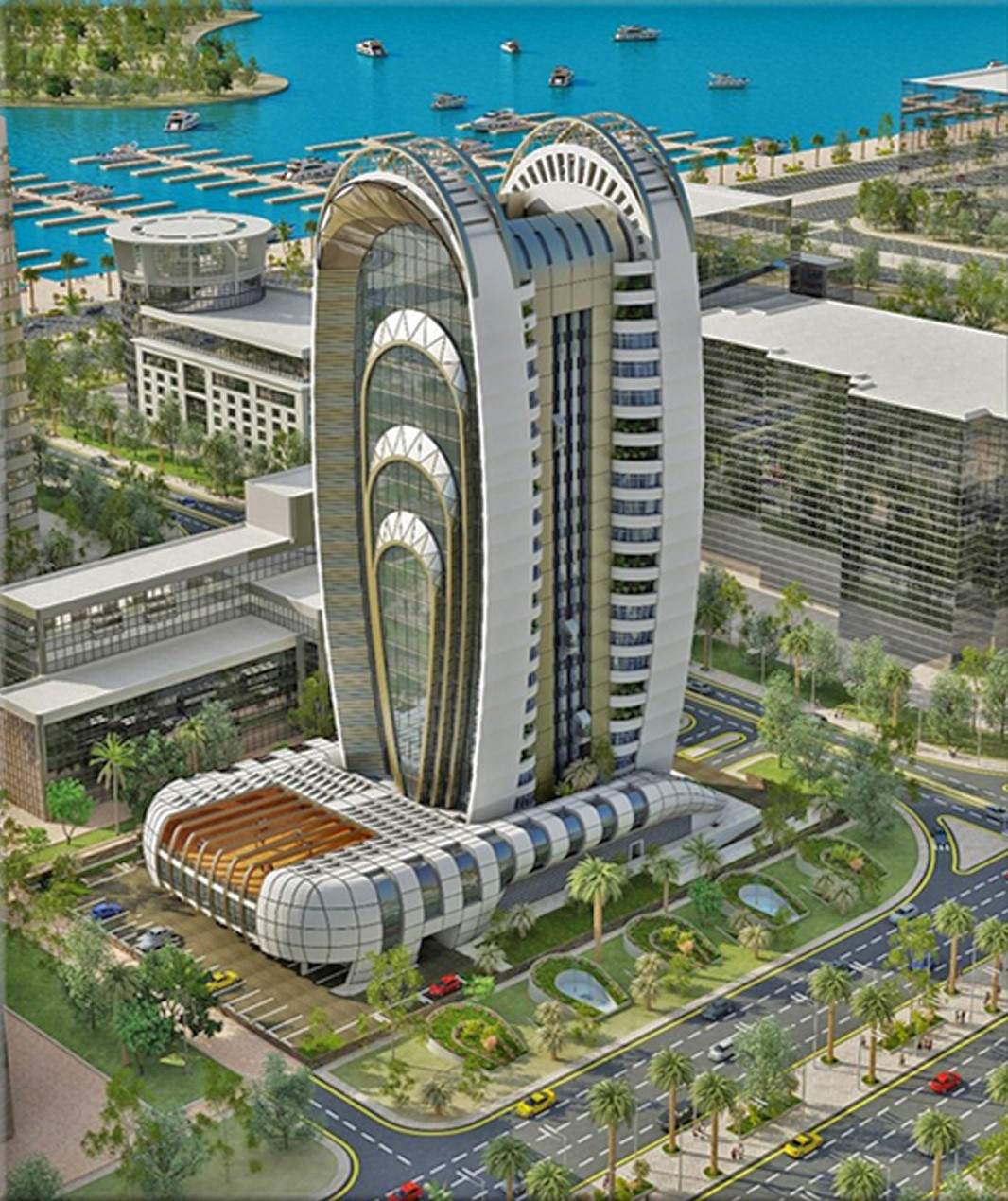 A modern residential tower located in Doha, Qatar, designed with an elegant architectural style inspired by the peacock. The tower’s design reflects the grace and beauty of the bird, incorporating its aesthetic elements into the architecture. The tower consists of 23 floors, including 20 typical residential floors and 3 podium floors. The podium levels are designed to accommodate amenities and shared spaces, enhancing the living experience for residents. Additionally, the project includes three basement levels, providing parking and essential services.